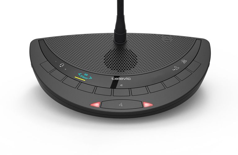 Беспроводной пульт председателя с селектором каналов, RFID-считывателем карт и OLED-дисплеем серии Confidea G3. Максимум 4 канала перевода