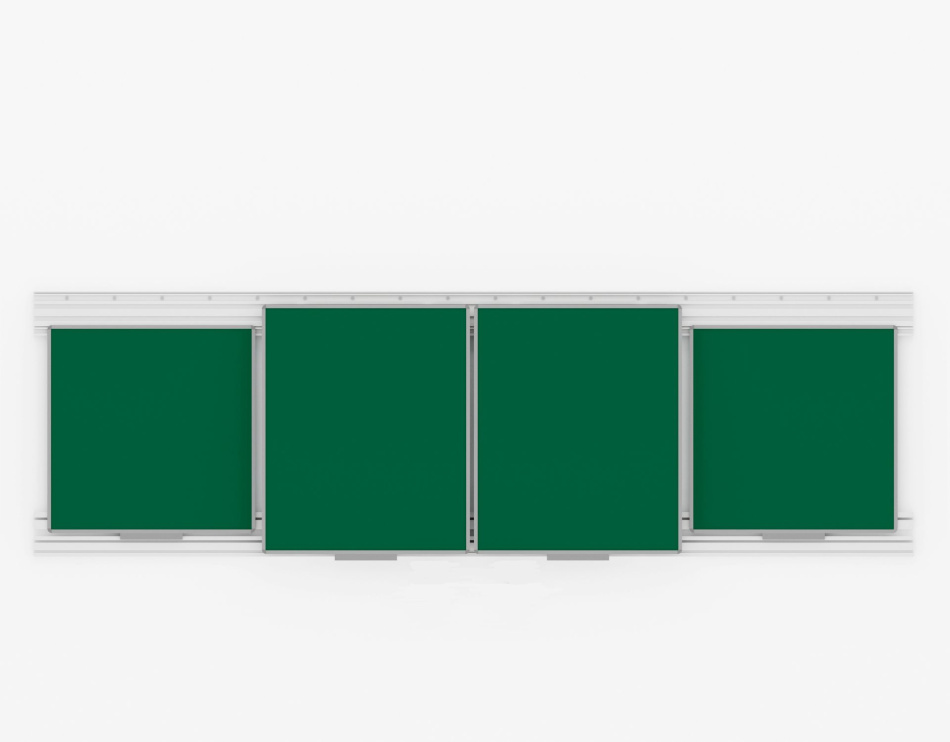 Рельсовая система PolyGlide Boards Slide Lite для использования с ЖК-панелями с диагональю 65", 75" и толщиной до 200 мм, включая настенное крепление. В составе комплекта рельса длиной 4м, кронштейны с фурнитурой, доски рельсовые меловые 100х120 - 2 шт, доски настенные меловые 100х100 - 2 шт., дополнительный рельс для фиксации кронштейнов.