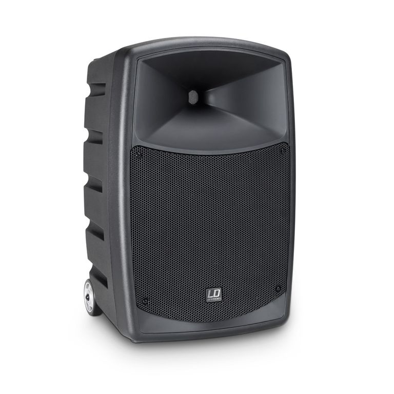 Активная акустическая система LD Systems ROADBUDDY 10 BPH 2 B5 - это компактное комплексное решение для воспроизведения голоса и музыки в пути или на ходу. Двухполосная система с 10-дюймовым низкочастотным излучателем и 1-дюймовым твитером работает от аккумуляторной батареи до 8 часов и питается от усилителя мощности класса D с пиковой мощностью 480 Вт. ROADBUDDY 10 BPH 2 B5 полностью беспроводной: радиосистема, которая работает в диапазоне 584–607 МГц. Встроенный плеер с многофункциональным дисплеем с подсветкой, эквалайзером, портом USB и слотом для карт SD поддерживает форматы mp3, wma и wav, позволяет воспроизводить потоковое аудио с помощью Bluetooth. В комплект входят два головных микрофона с поясными передатчиками и ИК-пульт дистанционного управления. К ROADBUDDY 10 BPH 2 B5 можно подключить проводные устройства с помощью двух входов с комбинированными разъемами и индивидуальными регуляторами громкости, которые можно переключать между линейным и микрофонным уровнями, стереовход через разъемы RCA (моно-суммирующий) и вход Aux 3,5 мм. Регуляторы громкости Treble, Bass, Echo и Master дополняют панель управления. ROADBUDDY 10 BPH 2 B5 легка в транспортировке, благодаря встроенным колесам и телескопической ручке. Сверху системы находится удобное отделение для хранения аксессуаров. Корпус выполнен из пластика и имеет фланец 36 мм для установки на спикерную стойку 35 мм.