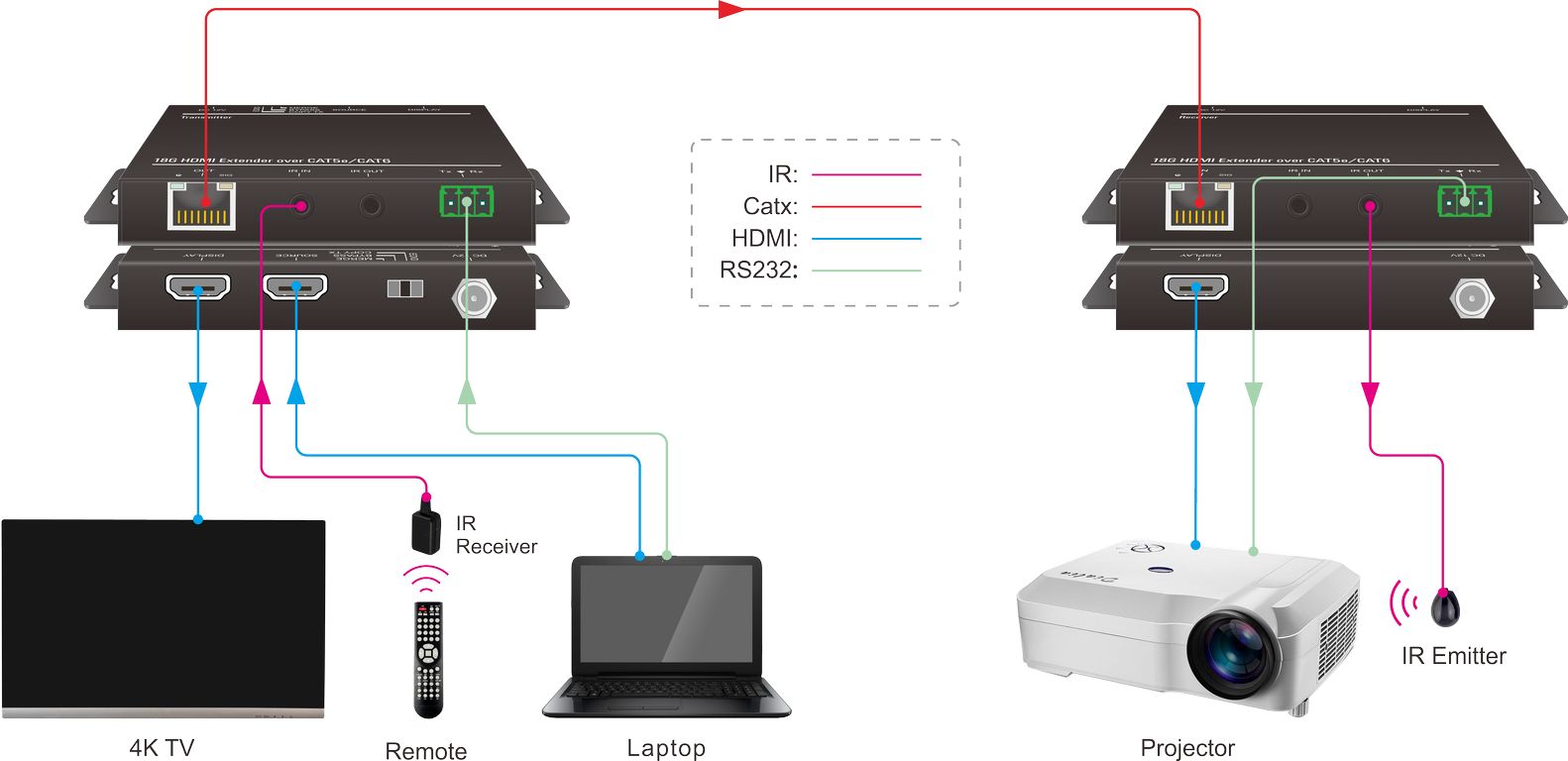 | Передача сигнала макс. | до 70 м (4K); до 80 м (1080P) по FTP CAT 5e/6 |