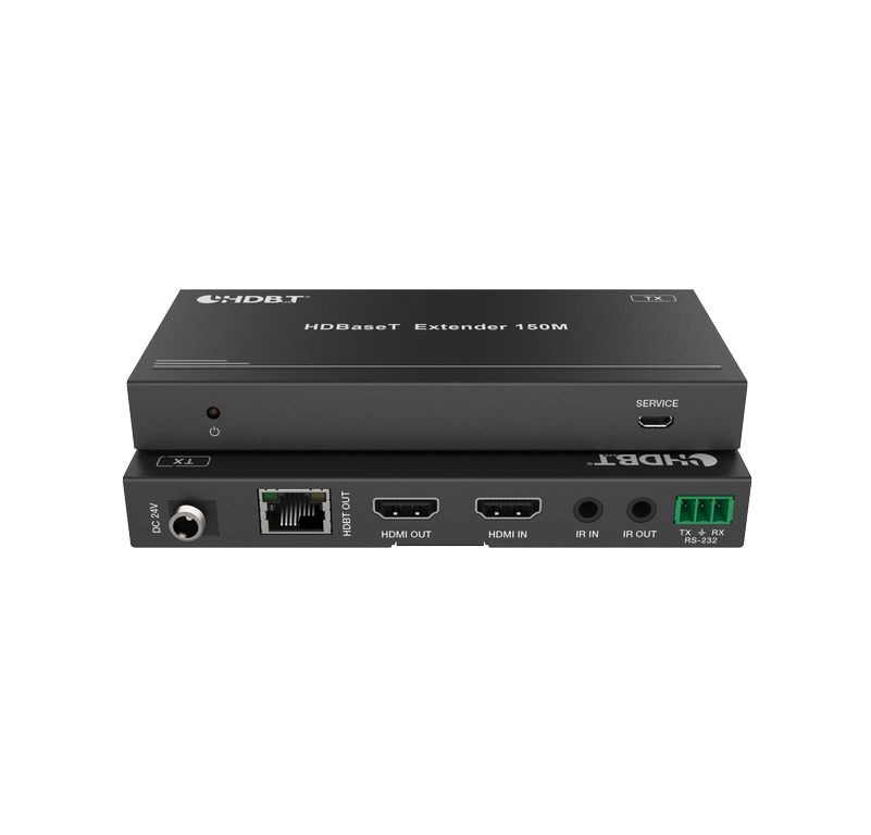 Комплект преобразует HDMI сигнал по стандарту HDBT и может передавать его на расстояние до 150 метров.